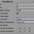 mass : 질량 Drag: 저항 Angular Drag : 회전저항 Use Gravity : 중력 Is Kinematic : 트랜스폼 값으로만 오브젝트 컨트롤 Interpolate Default : 물리값 바탕으로 물체 위치 보간 Interpolate : 이전프레임과 시간값 기준으로 물체 위치 보간 Exterpolate : 강체의 속력을 활용해 위치 보간 Collision Detection Discrete : 분리된 프레임별로 충돌체크. 계산량이 적어 일반적으로 사용 Continuous : 경로 예측으로 충돌예측 탐지, 정확, 계산량 많음 Coutinusus Dynamic : 같은 옵션 적용된 오브젝트의 충돌 감지, 모든 연속 감지 적용-> 부하 최고, 빠르게 움직이는 물체의 충돌 감지에 적합하다. C..
